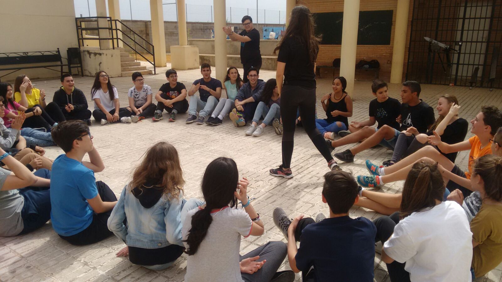 realizaron una batería de juegos grupales en el patio del IES Ramón y Cajal para un grupo de 50