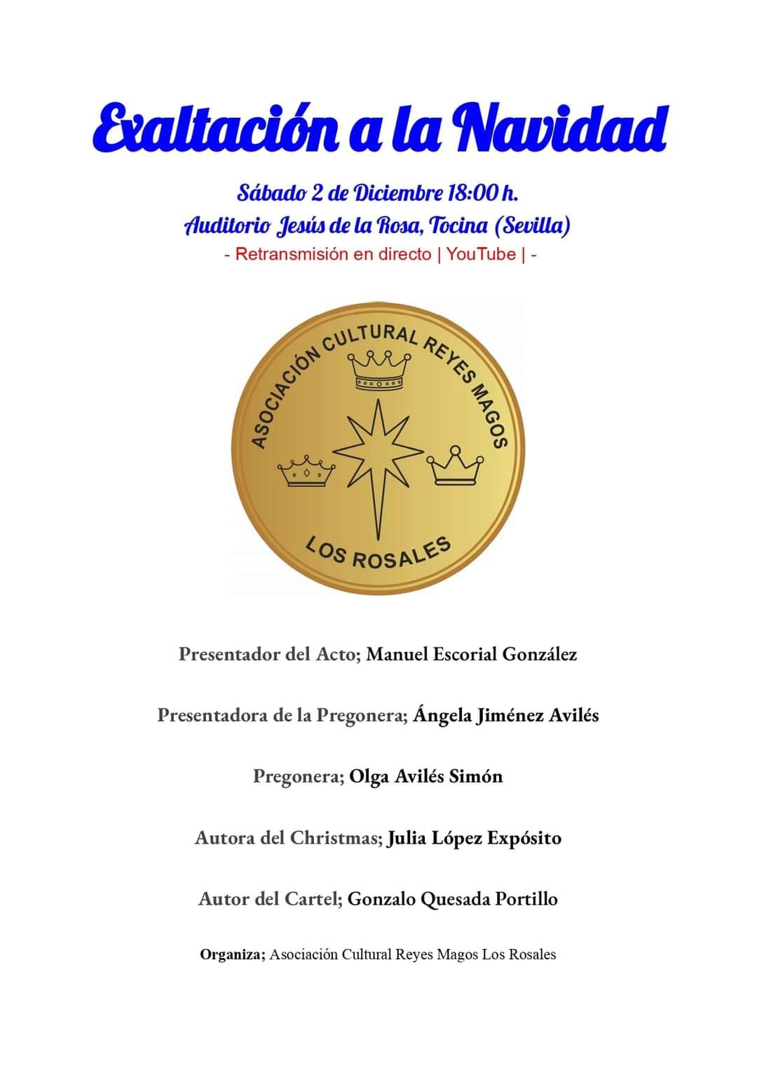 LA ASOCICACIÓN CULTURAL REYES MAGOS REALIZA UN AÑO MÁS: EXALTACIÓN A LA NAVIDAD 2023. Además presentará el cartel que anunciará la llegada de los Reyes Magos.