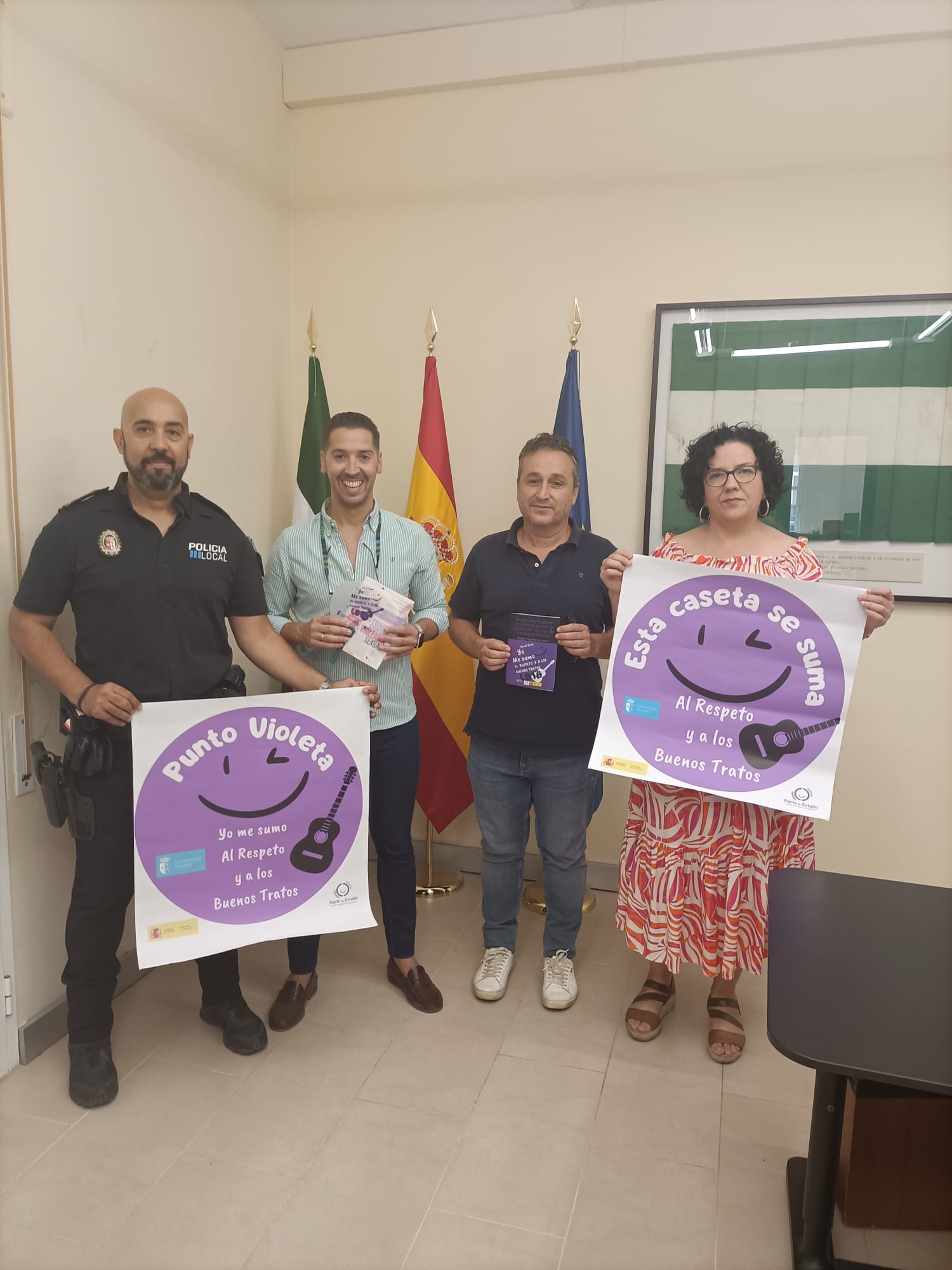 Para abordar cualquier incidencia que ocurra en la feria que tenga que ver con la violencia y/o acoso sexual, sumisión química..etc se repartirá entre la policía local y protección civil unas guías facilitadas por Instituto Andaluz de la Mujer de cómo abordar la situación en el caso que alguna persona la sufriera, y unos folletos informativos editados por la Delegación de Igualdad para la población juvenil, donde se dan unas pautas de cómo actuar en estas situaciones. Dichos folletos, estarán disponibles en el puesto de Protección Civil y Policía Local ubicado en la Feria, para cualquier persona que se acerque a recogerlo. De esta forma el puesto de Protección Civil y Policía Local será en la feria de Tocina y Los Rosales un Punto Violeta cercano, para la información y atención de las víctimas que puedan sufrir algún episodio de abusos y/o violencia sexual.
