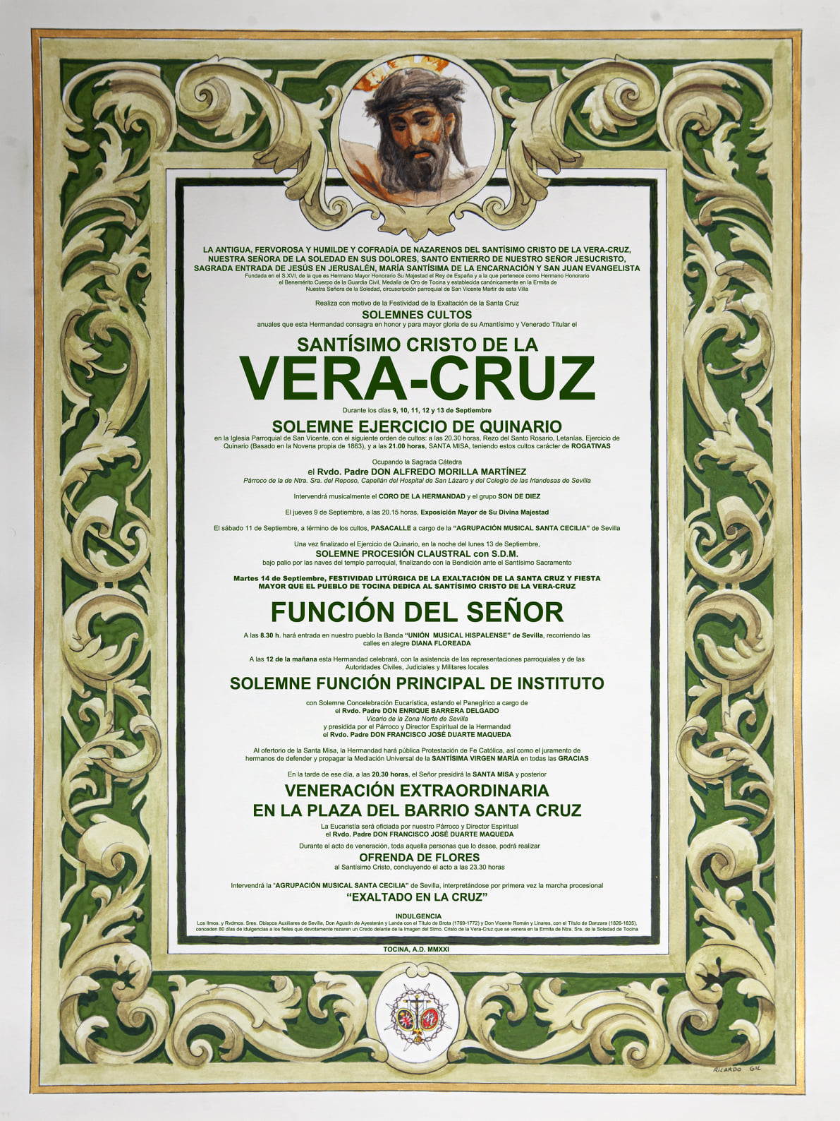 A diferencia del año pasado, el Santísimo Cristo de la Vera-Cruz podrá ser venerado en la plaza de la Calle Santa Cruz, el día 14 de Septiembre a partir de las 20:30 horas, momento en el que se oficiará la Santa Misa en su honor. La veneración y ofrenda de flores concluirá a las 23:30 horas.