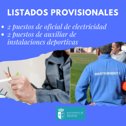 LISTADOS PROVISIONALES DE LAS PLAZAS DE OFICIAL ELECTRICISTA Y AUXILIAR DE INSTALACIONES DEPORTIVAS