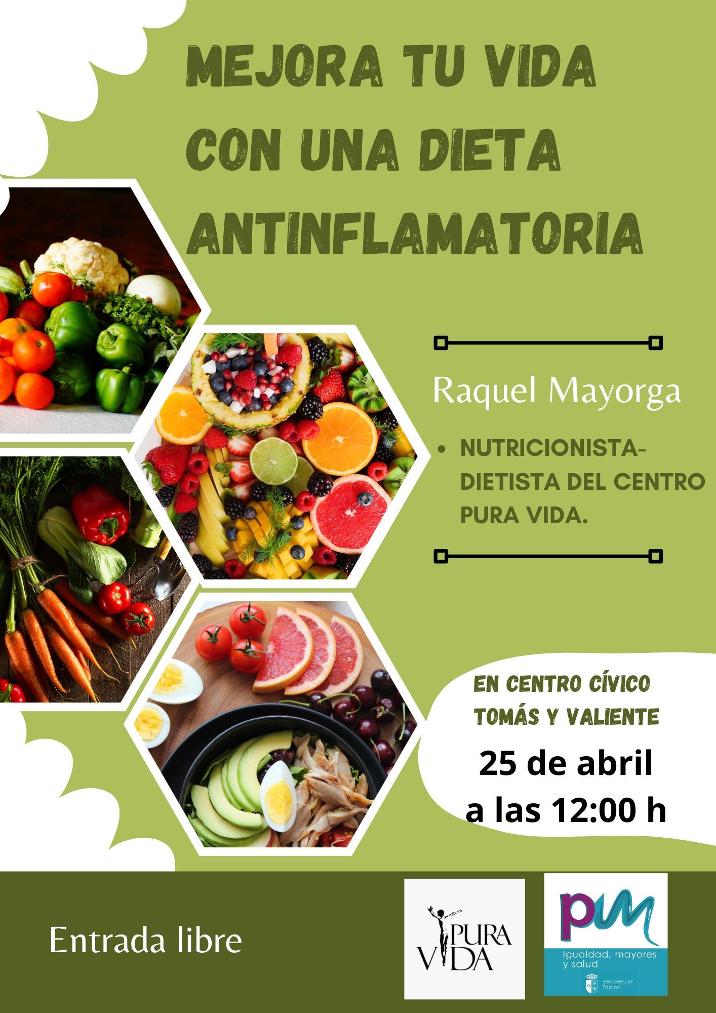 Finaliza la Semana de la Salud con el programa del viernes, 25 de abril, que comenzará con la charla “Mejora tu vida con una dieta antiinflamatoria”, a las 12 horas en el Centro Cívico Tomás y Valiente a cargo de Raquel Mayorga, graduada en Nutrición Humana y Dietética del Centro Pura Vida. La entrada es libre hasta completar aforo.