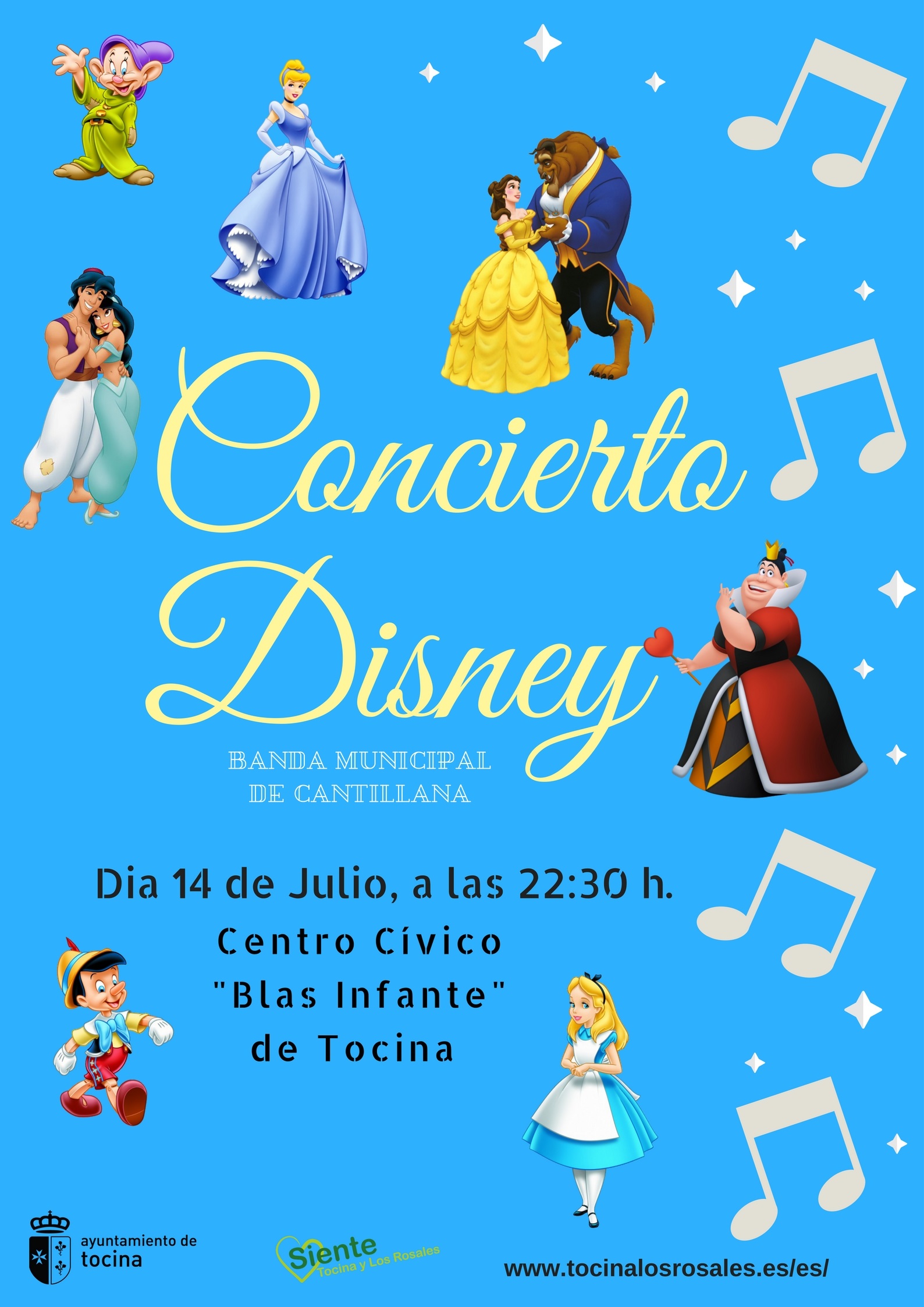 Siguiendo con la programación del verano de “Viernes Culturales” la Delegación de Cultura del Ayuntamiento de Tocina, organiza el próximo 14 de julio a las 22:30h, un concierto de Disney con la Banda Municipal de Cantillana, en el patio del Centro Cívico Blas Infante de Tocina.