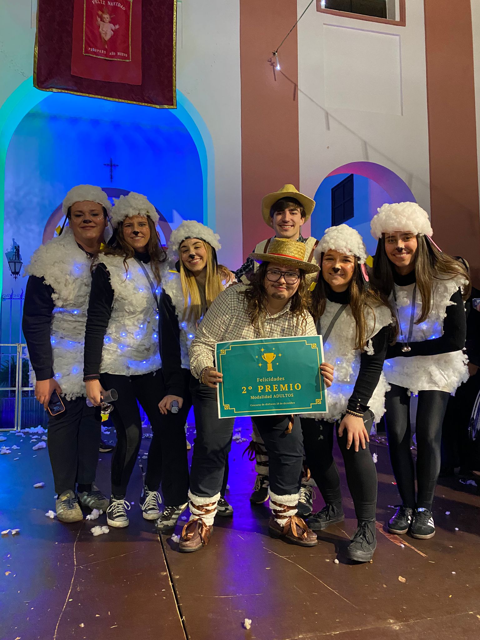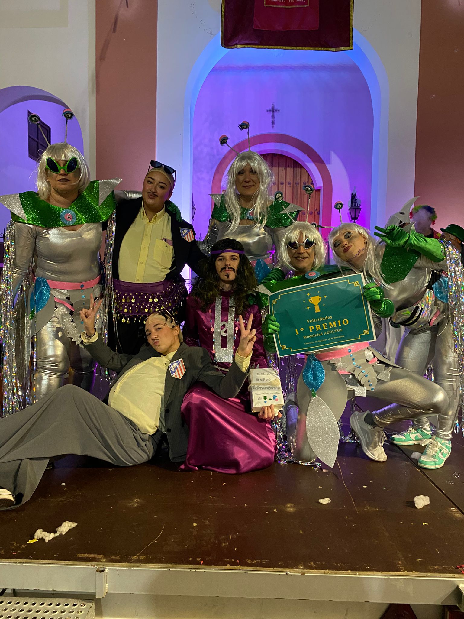 Por su parte en el concurso de adultos logró el primer puesto "Los alienígenas" consiguiendo los 150 euros designados para el ganador. Fueron segundos, consiguiendo 75 euros, "Las Maritrinis" y terceros (50 euros) "Las Mariposas".