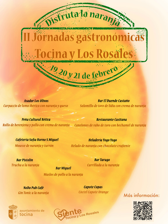 Estas II Jornadas Gastronómicas de Tocina y Los Rosales dedicadas a la naranja también se viralizan gracias a un vídeo promocional confeccionado por el Ayuntamiento de Tocina para difundir al máximo el evento, que pueden ver en el canal de Youtube del Ayuntamiento o aquí: