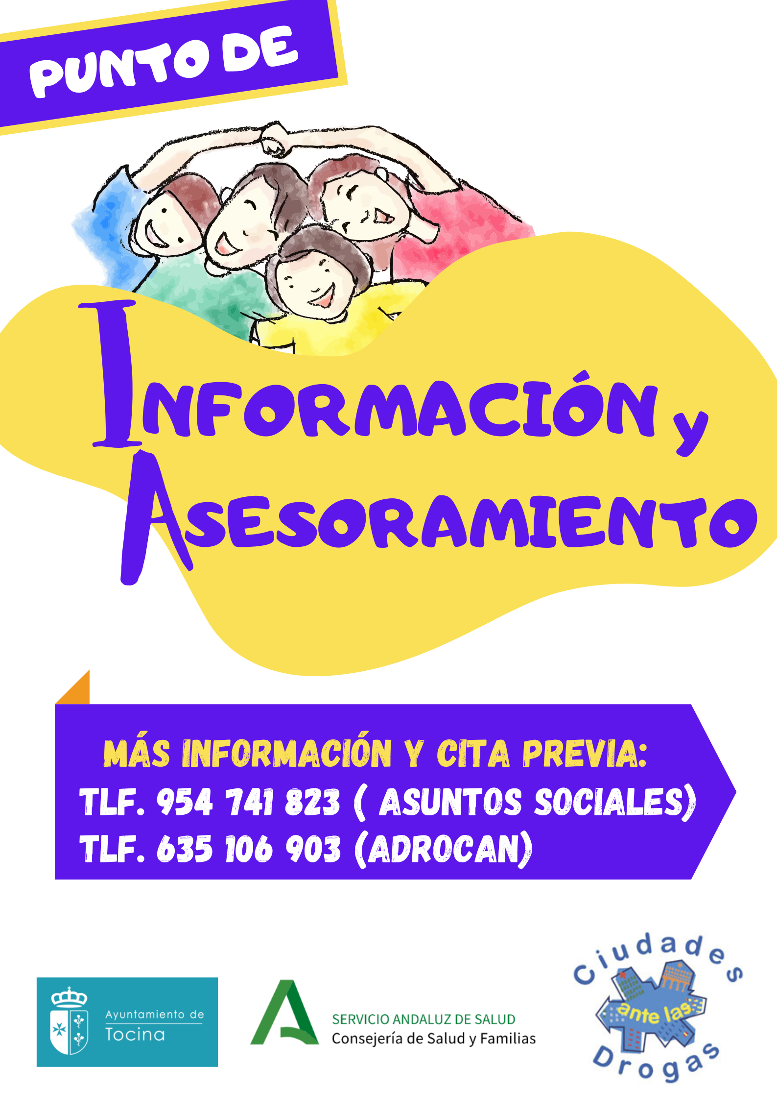 La Delegación de Bienestar Social con el patrocinio de la Junta de Andalucía a través del Programa Ciudades ante las Drogas, pone en marcha el Punto de Información para Padres y Madres. El objetivo de esta actuación es proporcionar a madres y padres de adolescentes una fuente de apoyo, orientación y asesoramiento ante las diferentes situaciones que se les planteen por el abuso y desarrollo por parte de sus hijos de sustancias adictivas (drogas), dispositivos electrónicos (móvil, consola, videojuegos) y otras posibles adicciones.
