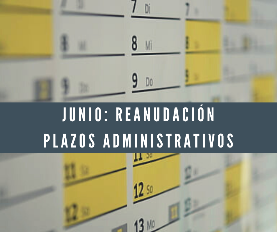 Sin embargo, el artículo 9 del R.D. 537/2020 establece que los plazos administrativos suspendidos en virtud del Real Decreto 463/2020, de 14 de marzo, se reanudarán a partir del mes de junio. Dice de forma textual: “con efectos desde el 1 de junio de 2020, el cómputo de los plazos administrativos que hubieran sido suspendidos se reanudará, o se reiniciará, si así se hubiera previsto en una norma con rango de ley aprobada durante la vigencia del estado de alarma y sus prórrogas”.