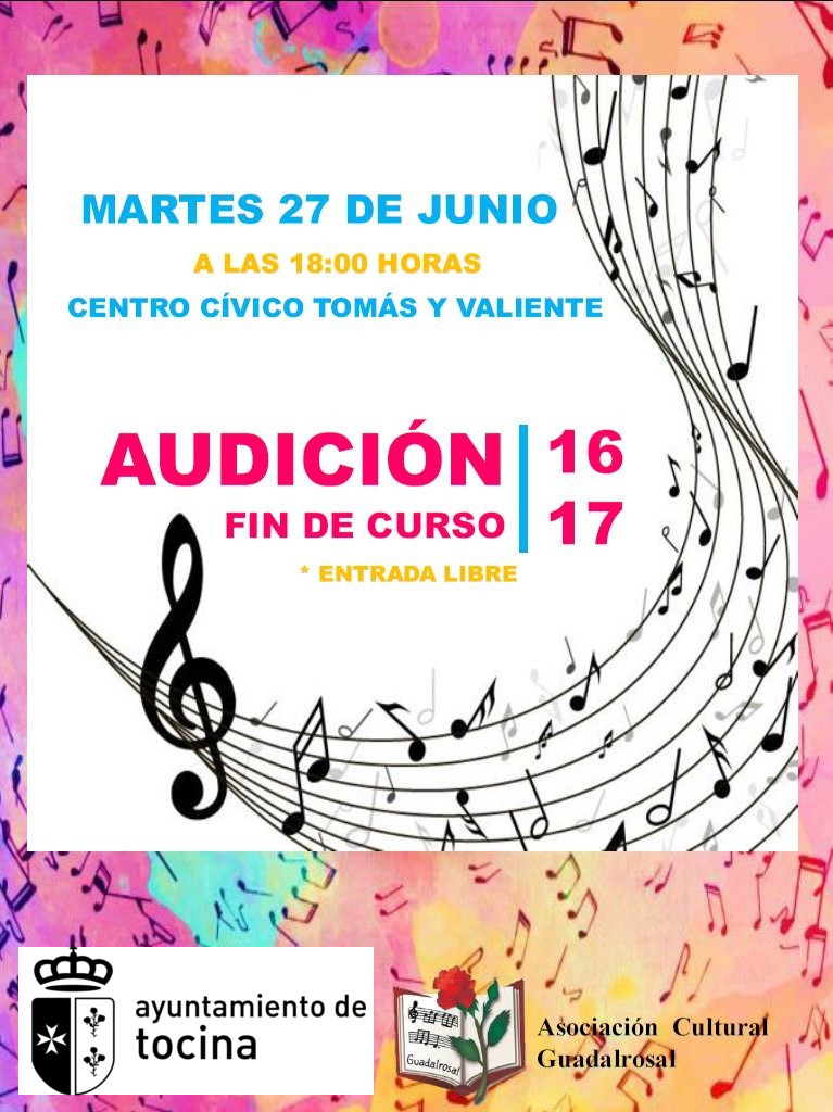 Mañana martes, 27 de junio, será el día en el que los/as jóvenes músicos/as del Aula de Música de la A.C. Guadalrosal hagan sus mejores demostraciones musicales, en base a lo aprendido en este curso 2016-2017 que toca a su fin.