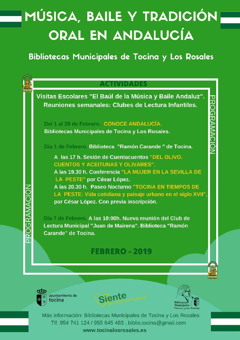 El mes de febrero de este año destacará por la diversidad de actividades programadas para conmemorar el Día de Andalucía, con el título “Música, Baile y Tradición Oral en Andalucía”.