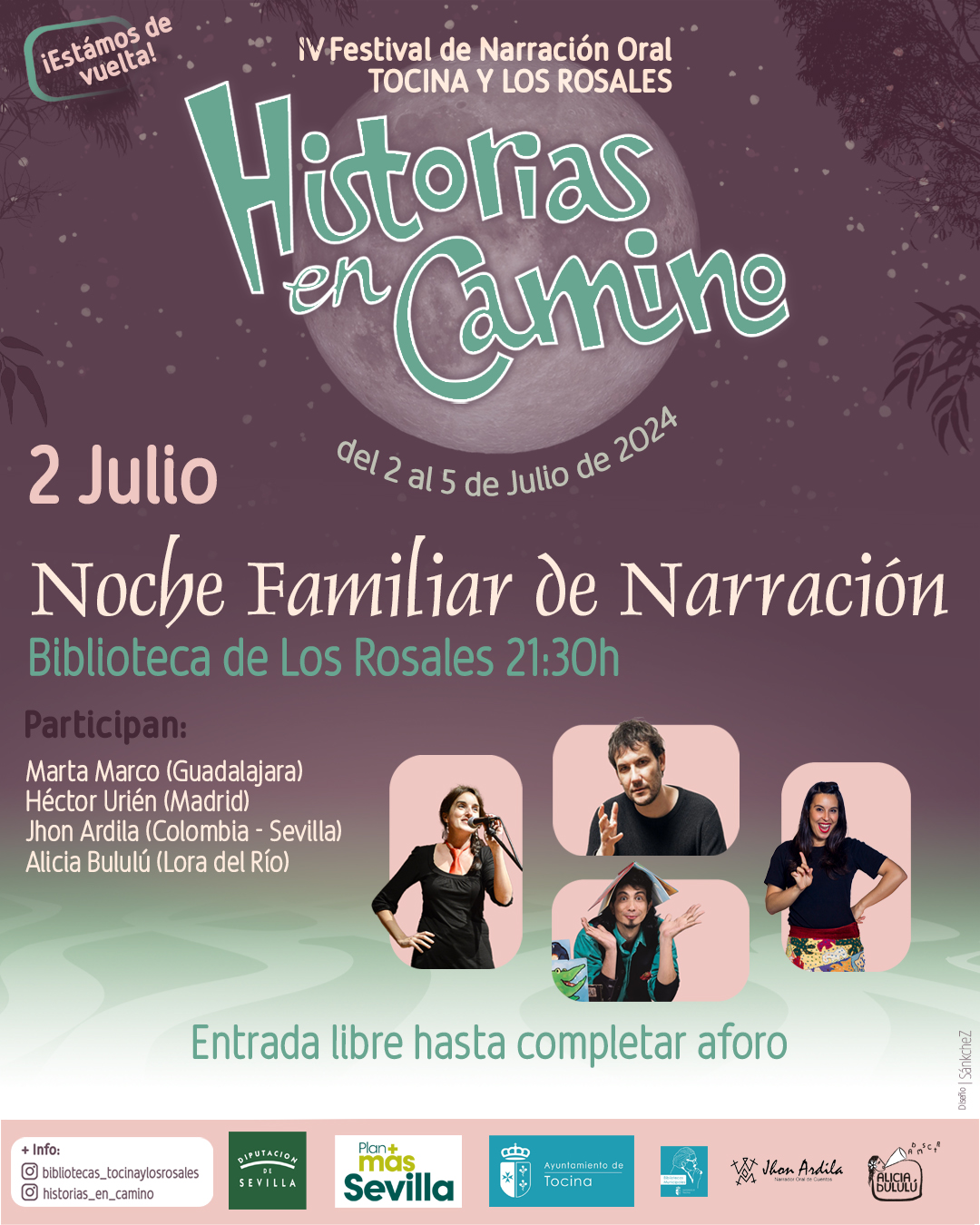 Este año el Festival contará con Héctor Urién, proveniente de Madrid, Marta Marco, que llega desde Guadalajara y estarán acompañados por los narradores de la organización y conocidos en el municipio: Alicia Bululú (Sevilla) y Jhon Ardila (Colombia – Sevilla).