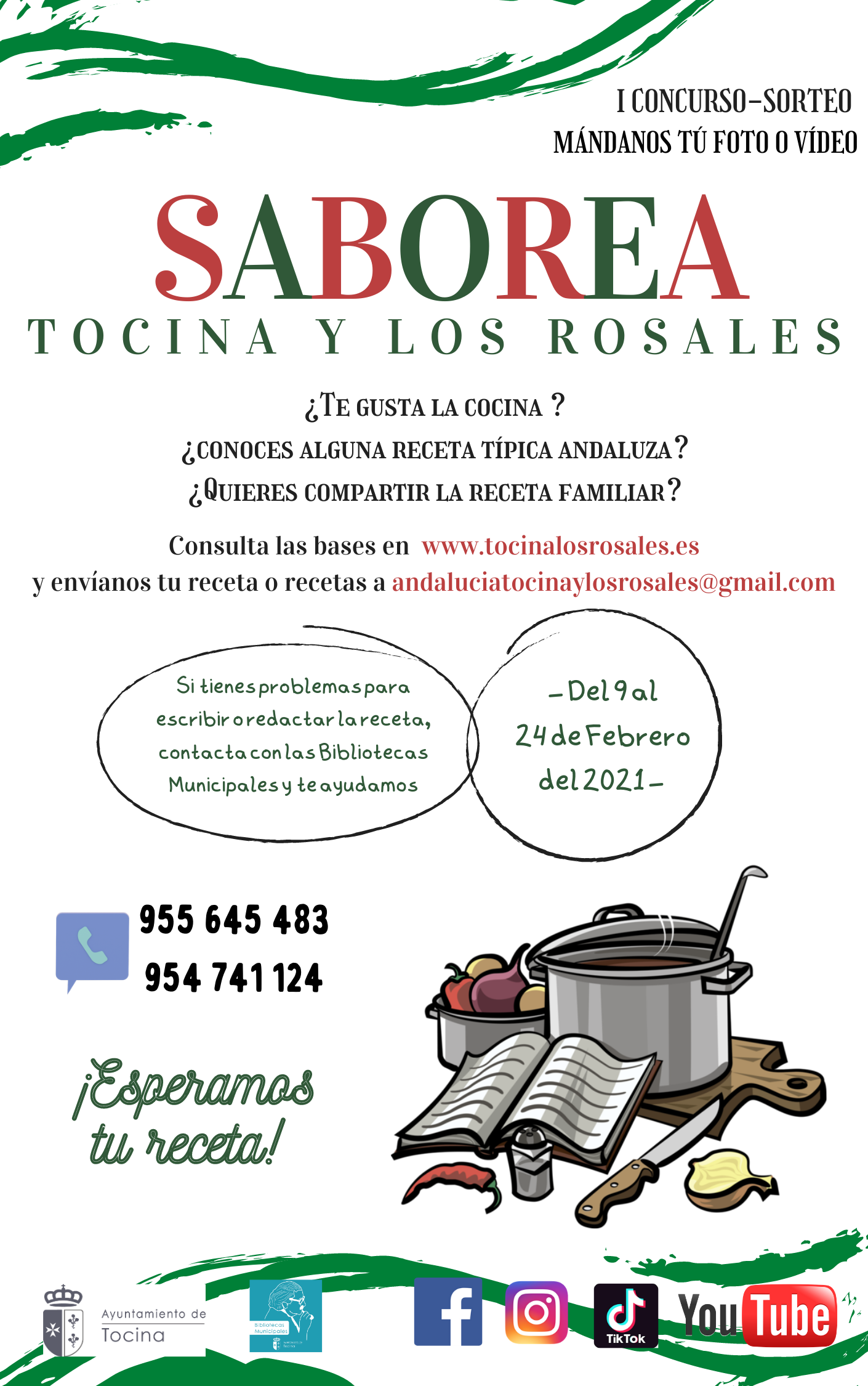 Los sabores y los olores son capaces de transportarnos a lugares y a momentos. Las recetas son transmisoras de historias, y de herencias de familia. Por eso se pone en marcha para conmemorar el Día de Andalucía el concurso-sorteo “Saborea Tocina y Los Rosales”. Con él se pretende recopilar recetas típicas andaluzas y las recetas de familia de Tocina y Los Rosales, y poner en valor productos de nuestra tierra como la naranja, el melocotón o la ciruela.