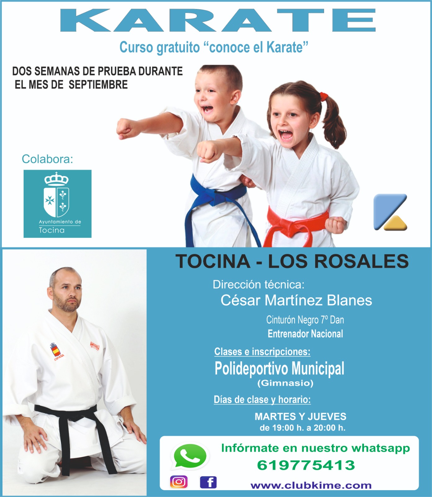 El Club de Karate Kimé, en colaboración con el Ayuntamiento de Tocina, inicia una nueva temporada invitando a toda la población a participar en cursos gratuitos de kárate.