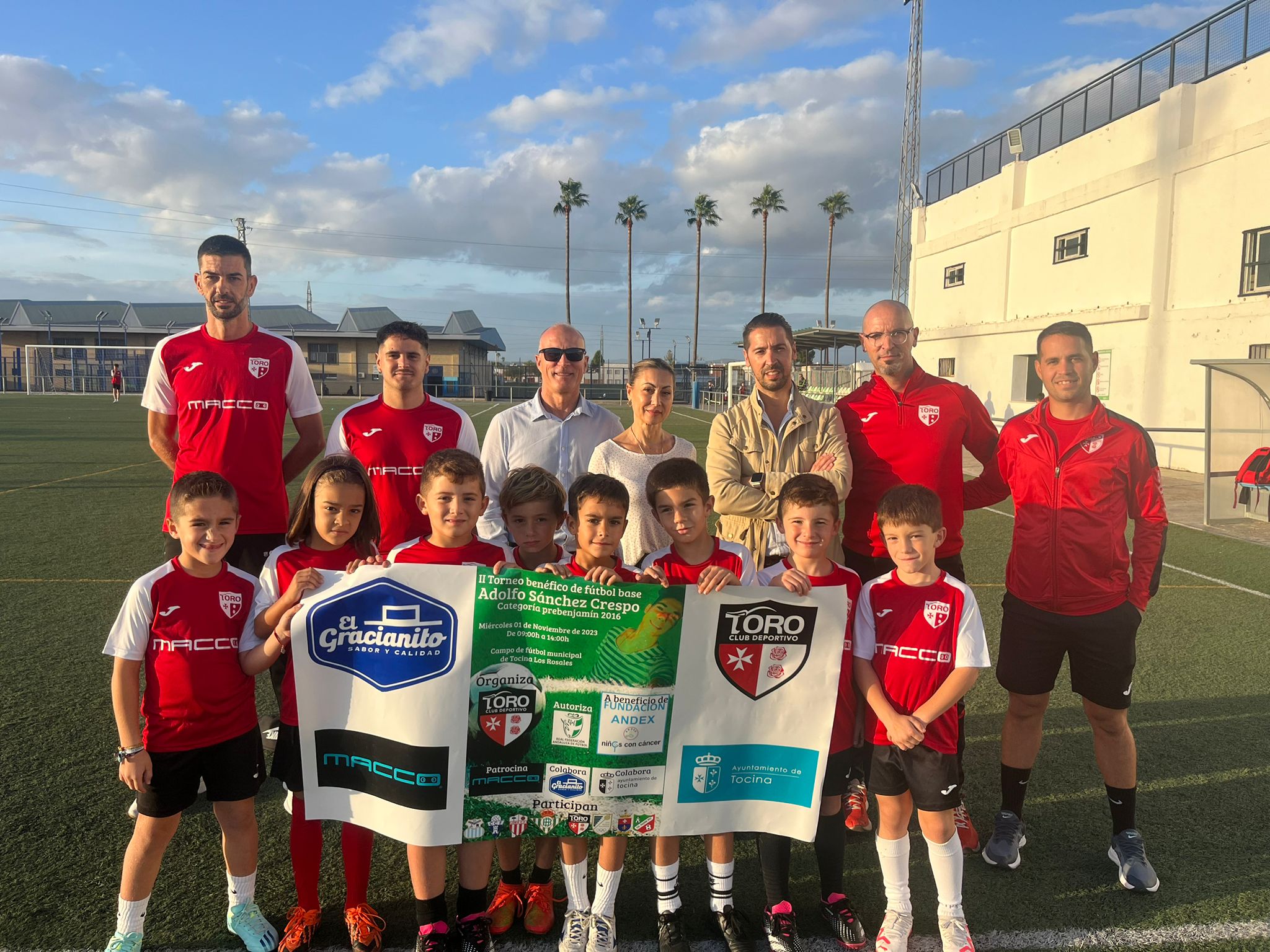 El CD Toro organiza por segundo año el torneo de fútbol benéfico en memoria de Adolfo Sánchez Crespo. El club organizador junto con los padres de Adolfo y el concejal del Ayuntamiento de Tocina Andrés Carmona, presentaron el cartel del torneo el pasado viernes. En esta ocasión los beneficios íntegros generados irán donados a Andex, fundación que trabaja por la mejora de las condiciones de vida de los niños con cáncer.