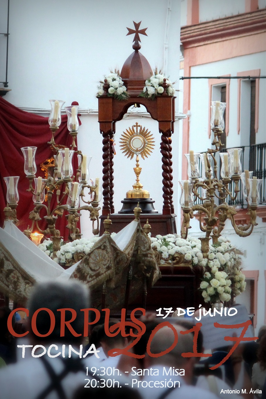 El próximo sábado 17 de junio, la Parroquia de San Vicente Mártir de Tocina celebrará la festividad del Corpus Christi. Saldrá en procesión, además del paso de la Custodia, la Imagen de Nuestra Señora del Rosario. Acompañará musicalmente la Banda de Música de Hornachuelos (Asociación Musical Manuel de Falla) de Córdoba. La procesión comenzará a las 20:30 h., tras la Santa Misa a las 19:30 h. La Parroquia invita, como es tradición, a que adornen sus balcones al paso del Santísimo Sacramento .