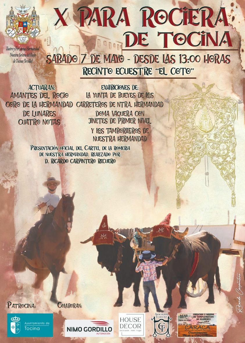 La Hermandad de Ntra. Sra. del Rocío de Tocina organiza para este sábado, 7 de mayo, desde las 13 h. en el Recinto Ecuestre "El Coto" la décima edición de la "Pará Rociera", actividad que cuenta con el patrocinio del Ayuntamiento de Tocina.