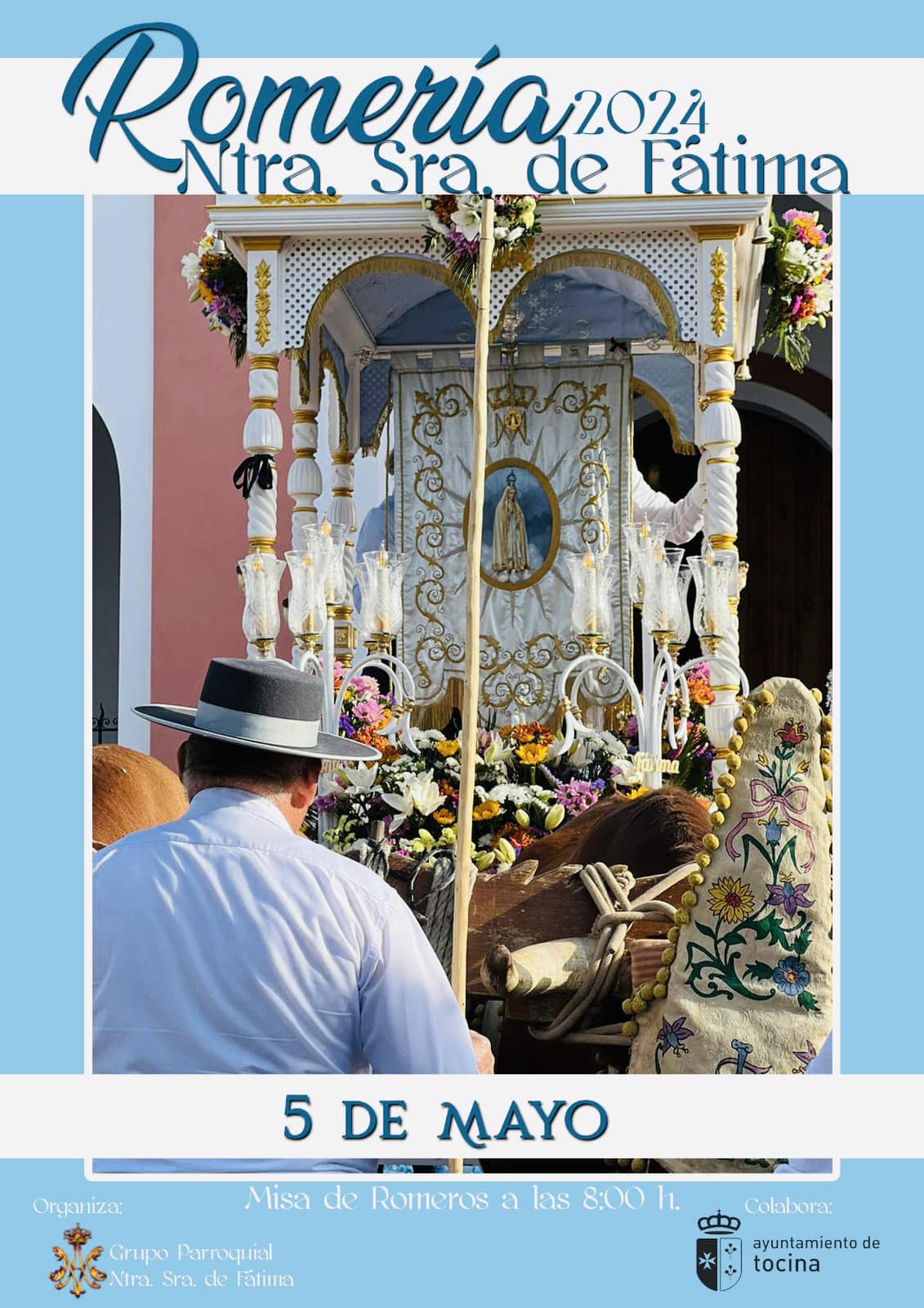 El Grupo Parroquial pregonará la salida del paraje a las 18:30 horas. La hora oficial de salida desde el paraje romero es a las 19:00 horas.