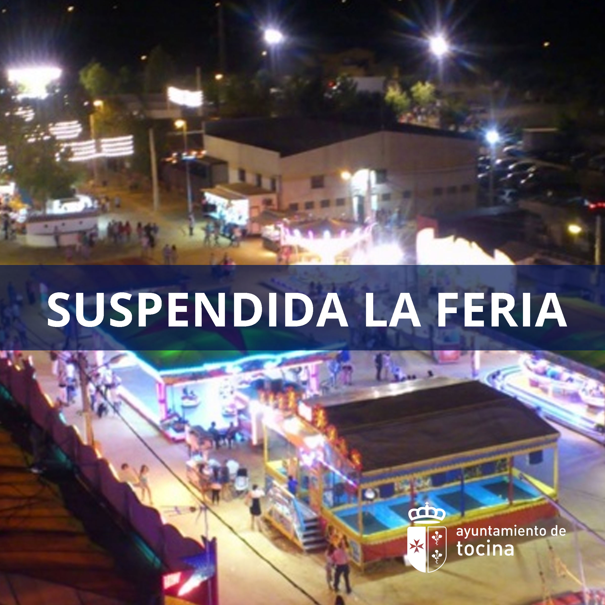 La Corporación Municipal ha decidido finalmente suspender la Feria de Tocina y Los Rosales de este año, que se hubiese celebrado del 3 al 6 de septiembre. Así se ha comunicado a los presidentes de las casetas por parte del edil de Festejos, Andrés Carmona Aranda, tras consulta del alcalde a los/as miembros de la Corporación, incluyendo al Grupo Socialista, existiendo unanimidad de criterio al respecto.