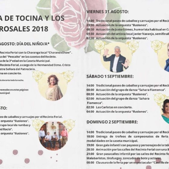 PROGRAMACIÓN DE FERIA 2018 DE TOCINA Y LOS ROSALES
