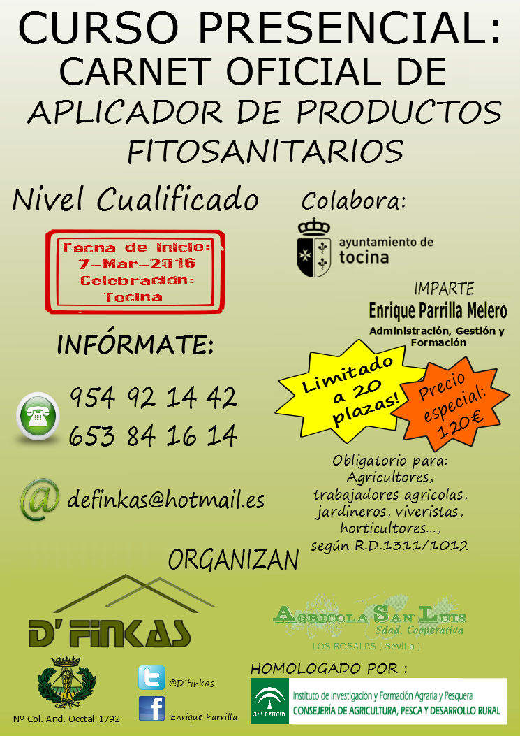 En este caso, la impartición del curso será responsabilidad de la entidad D’Finkas, en la que su titular Enrique Parrilla Melero, es docente acreditado por el IFAPA para este tipo de cursos .