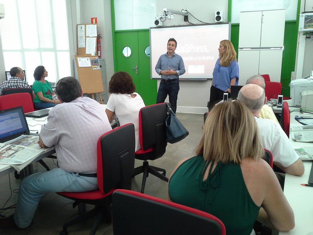 Ayer, miércoles 21 de septiembre, un primer grupo de usuarios/as recibió formación en el taller de prensa e información digital; talleres que se desarrollan en el centro Guadalinfo de Tocina y Los Rosales. Realizados en horario de tarde por las periodistas Rocío Corrales y Mai Mancheño, se imparten contenidos relacionados con los medios de comunicación, redes sociales y creación de un blog colectivo. Para el acto de apertura del curso estuvo presente el alcalde, Francisco J. Calvo, que valoró muy positivamente estas iniciativas tendentes a mantener a la población bien informada. El próximo miércoles Mai Mancheño abordará nuevos temas, incidiendo en el buen uso de las redes sociales y su relación con el resto de los medios de comunicación.
