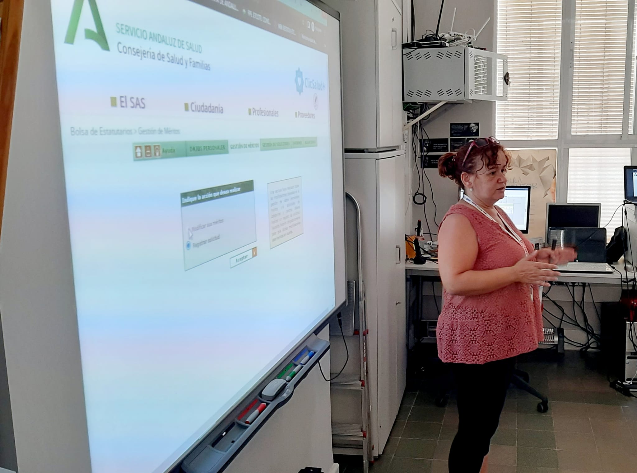 El interés por participar en la bolsa y oposiciones del Servicio Andaluz de Salud quedó demostrado en el día de ayer con la afluencia masiva, en torno a 50 personas, que recibió el centro Guadalinfo de Tocina y Los Rosales. Esta sesión fue meramente informativa, en la que Mar Valerio, en representación del sindicato Comisiones Obreras, explicó el sistema de aportación de documentación para la bolsa y oferta Pública de Empleo de SAS, el acceso a la Ventanilla Electrónica del Candidato, así como las previsiones de oposiciones, plazos de aportación de méritos, etc. El año pasado se desarrollaron varias sesiones de este tipo en el centro, tanto informativas como prácticas, donde las personas candidatas, gracias a los equipos informáticos disponibles en Guadalinfo, pudieron presentar sus solicitudes para una oposición o aportar méritos en la bolsa SAS. Dada la buena acogida de las mismas, el centro espera repetir sesiones similares para facilitar la inserción laboral de la ciudadanía de Tocina y Los Rosales en este sector.