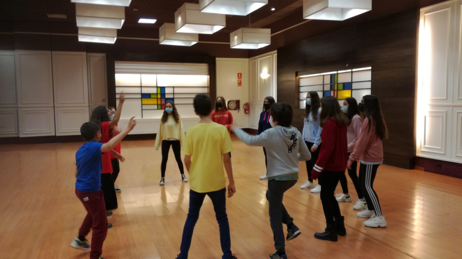 La juventud participante disfrutó por la mañana de una serie de talleres tanto de danza como de percusión corporal, con el objetivo de fomentar la creatividad tanto individual como colectiva. Tras el almuerzo la jornada continuó realizando un taller de improvisación teatral dónde los jóvenes debían poner a prueba destrezas y habilidades sociales, comunicativas y creativas. Para culminar la jornada se realizó una divertida gymkhana, realizando ejercicios de investigación y habilidades físicas como equilibrio, rapidez, coordinación, etc.