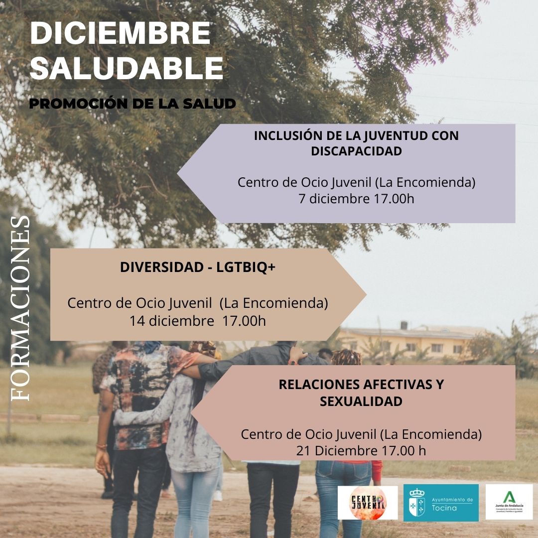 Formación de inclusión de la juventud con discapacidad: miércoles 7 de diciembre. Lugar: Centro de Ocio Juvenil La Encomienda. Horario: 17 h.