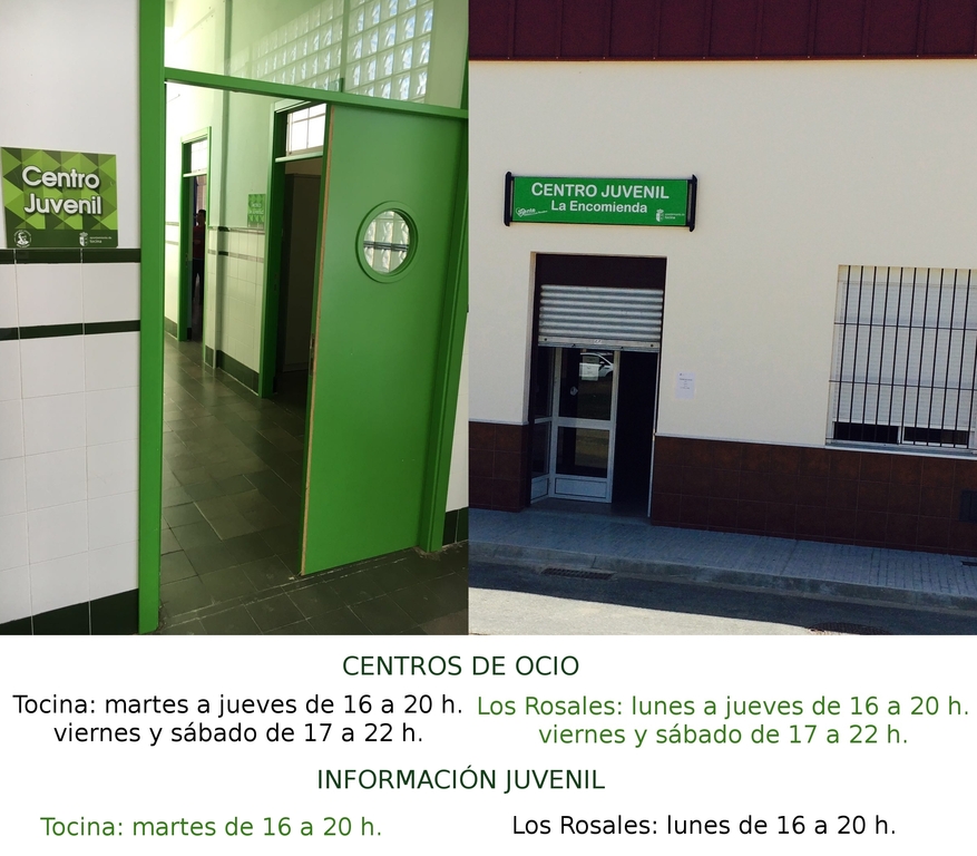 El Centro de Información Juvenil atenderá los lunes en el centro de Los Rosales y los martes en Tocina , en el que, entre otras gestiones, podrán solicitar el carné joven e informarse sobre el programa de Garantía Juvenil. El horario de atención será en ambos centros de 16 a 20 h.