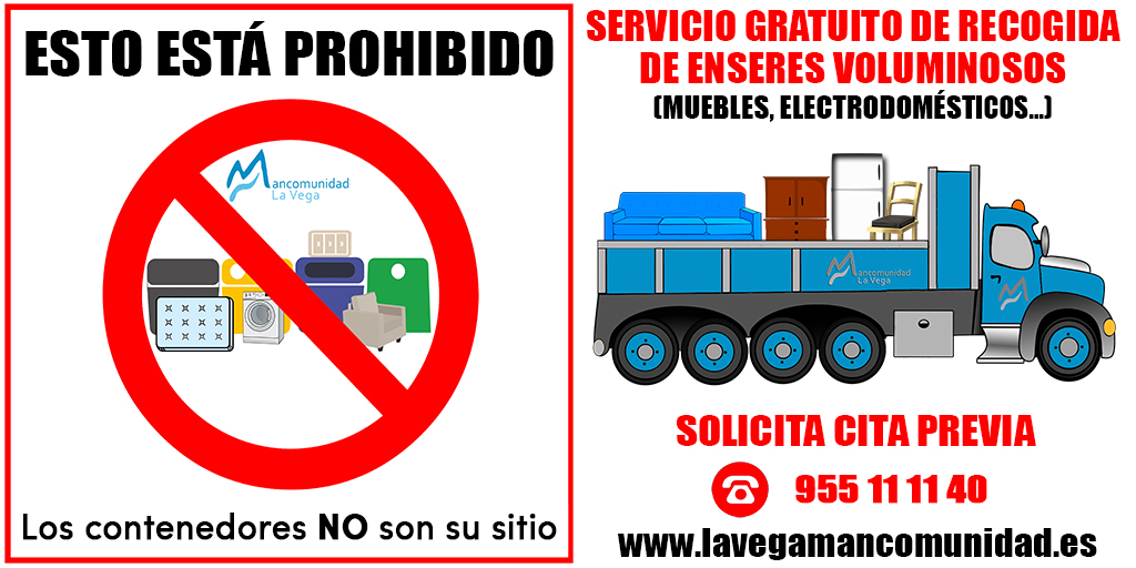 Pueden pedir cita previa para la recogida a través de este enlace: http://voluminosos.lavegamancomunidad.es/ o a través del teléfono 955 11 11 40.