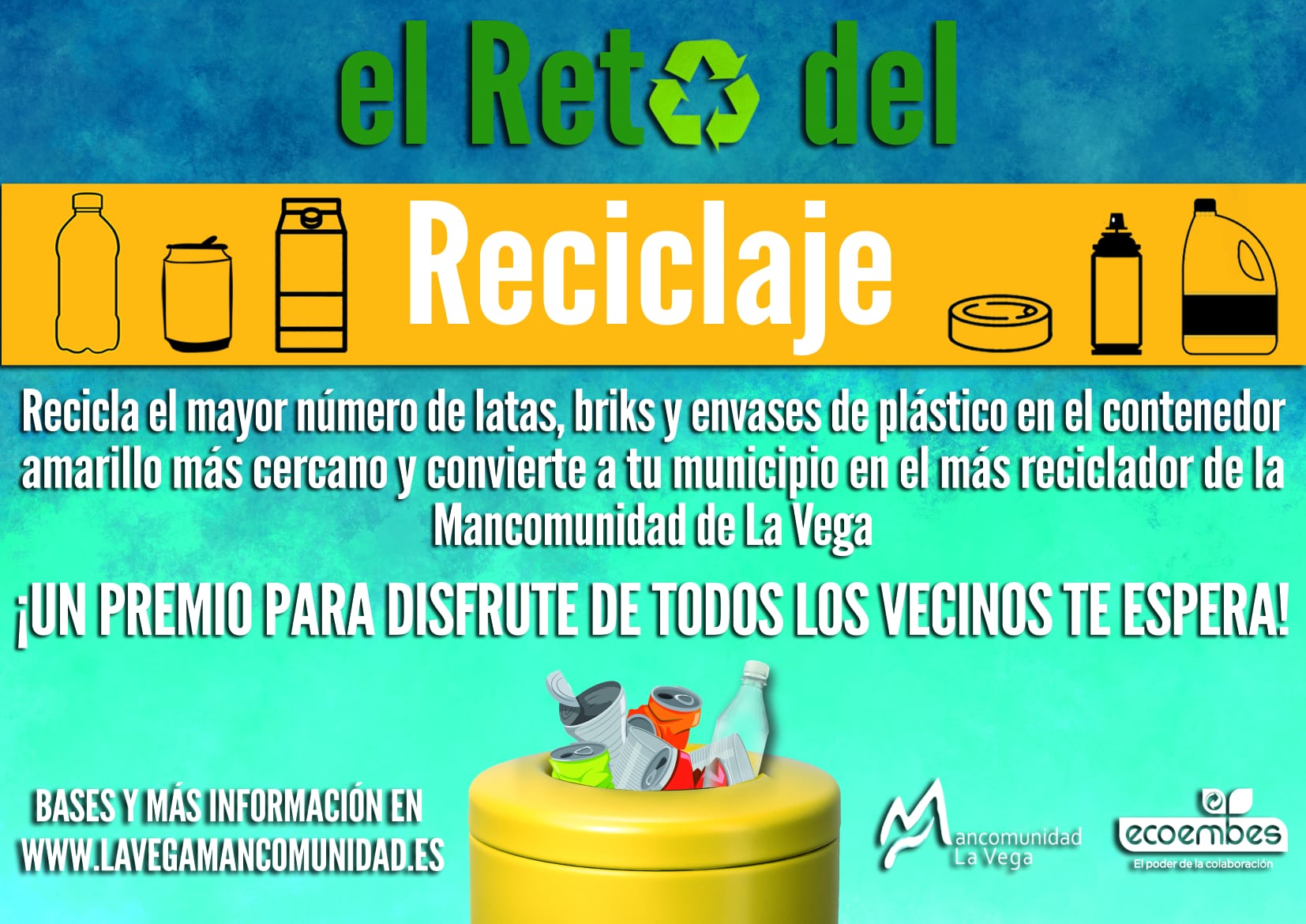 Desde la Mancomunidad de Servicios La Vega, junto con Ecoembes, se ha organizado una campaña denominada "El reto del Reciclaje" que quiere fomentar e incrementar la implicación de la ciudadanía en el reciclaje de latas, briks y envases de plástico en el contenedor amarillo.