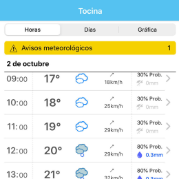 AVISO AMARILLO POR VIENTO Y LLUVIA EN EL DÍA DE HOY