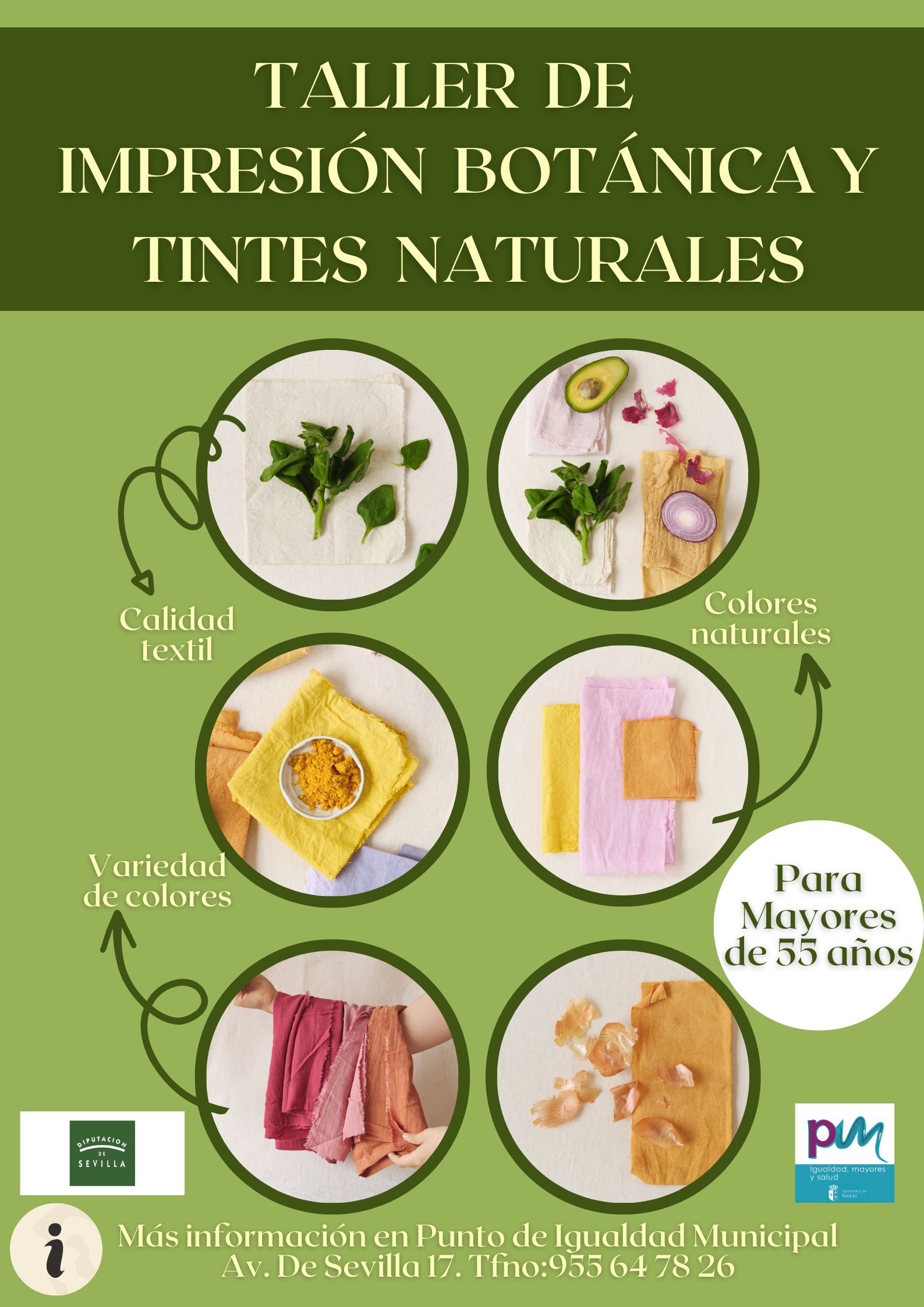 - Taller de impresión botánica y tintes naturales. Tendrá lugar el martes también en horario de tarde. Comenzará a las 16:30 horas y el lugar de impartición será en el Centro de Formación “El Coto”. Lo imparte Mar Márquez, artista textil.